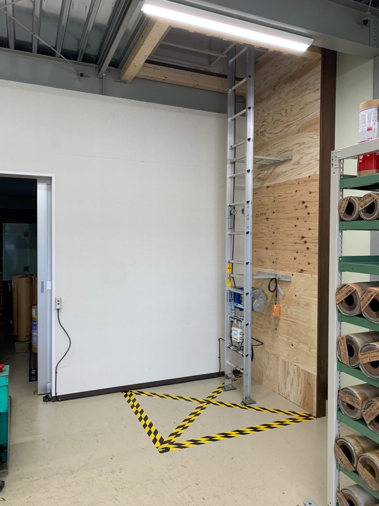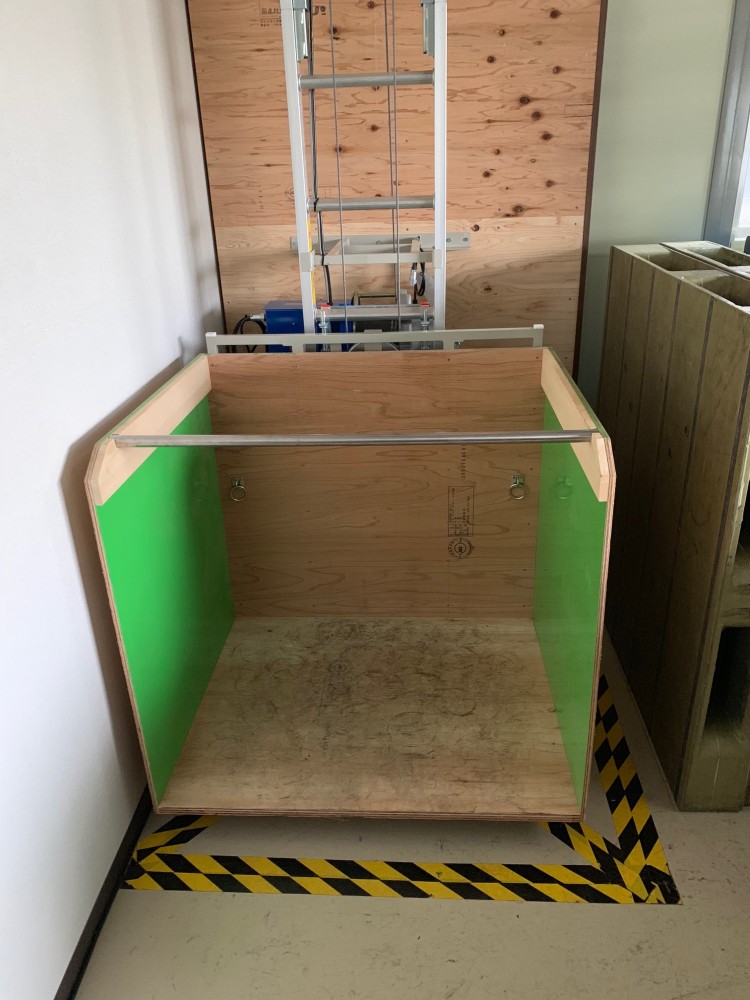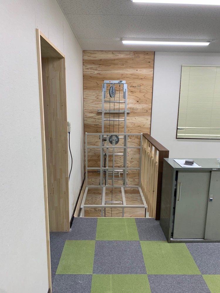 1階台車停止時 背面にはビスが効く24mmの板張りをしてもらいました。