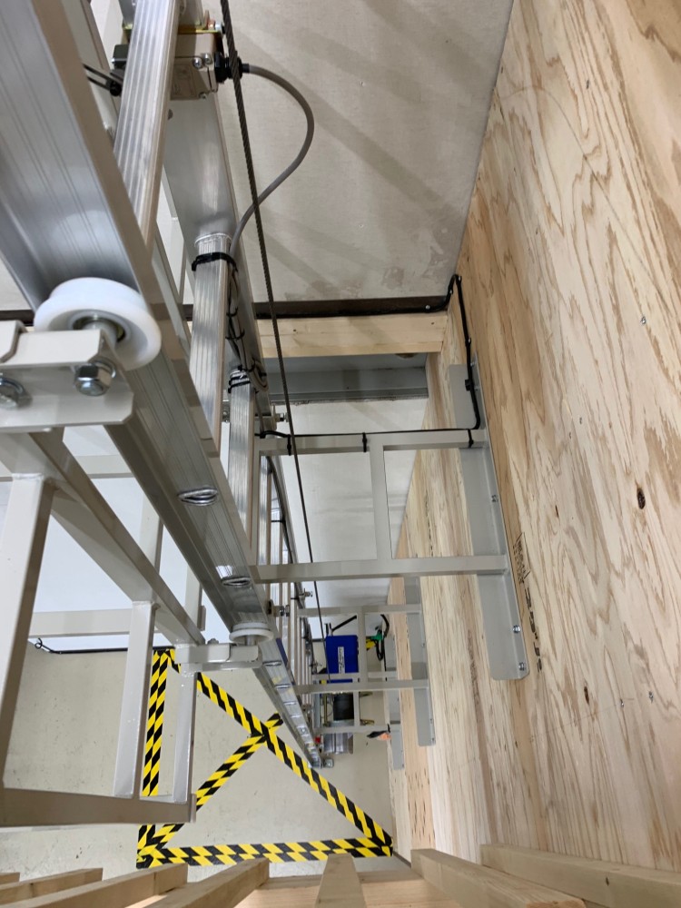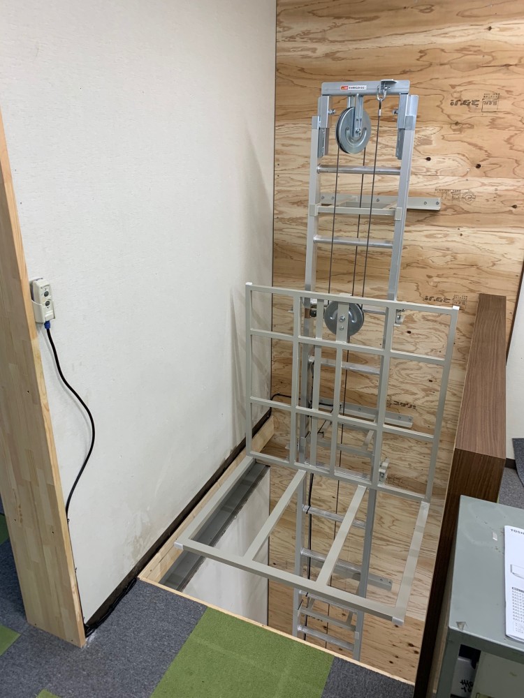 1階 台車は2階停止時 レール背面にウインチが付きます。