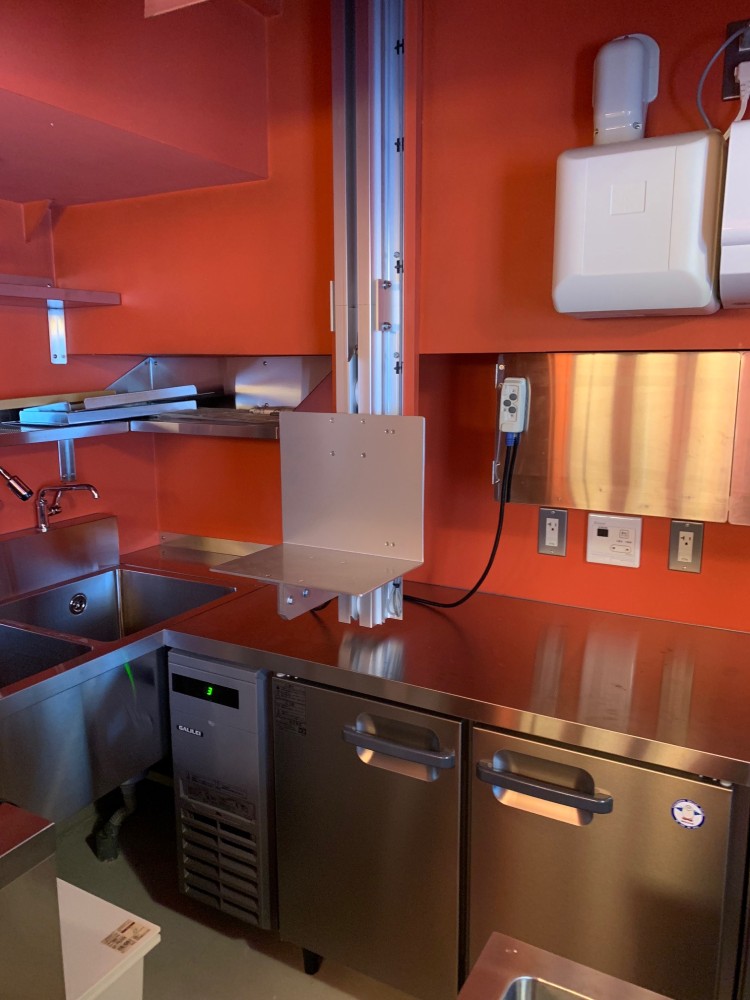 2階部、台車停止位置。取り出し口。