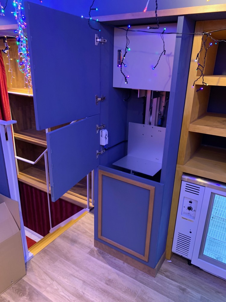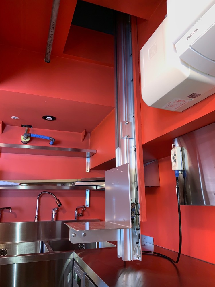 最大積載荷重50kg 上限下限リミット自動停止装置付き スピード調整ボリューム付き 600×600の開口スペースがあれば設置可能です。レール背面部には(1階レール始まりから2階ウインチボックス裏まで)ビスが効く壁面が必要です。 壁面にレールを固定する為、1階のスペースを有効に使えます。