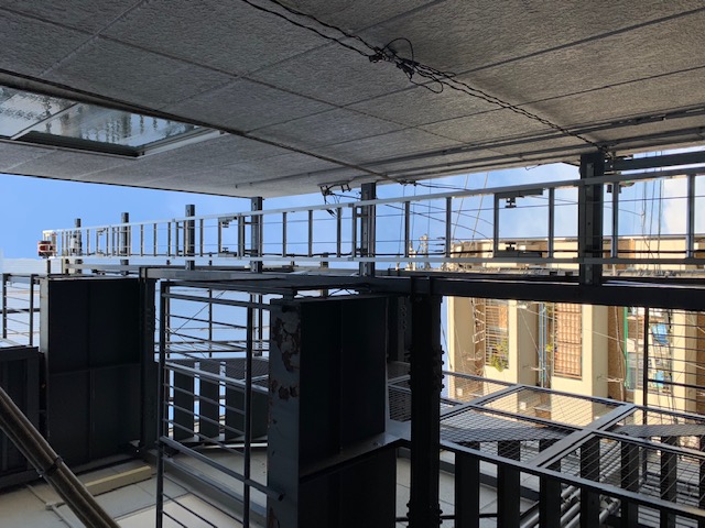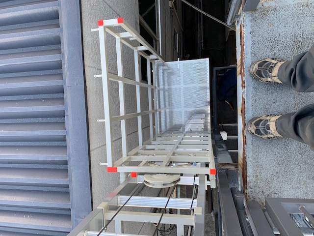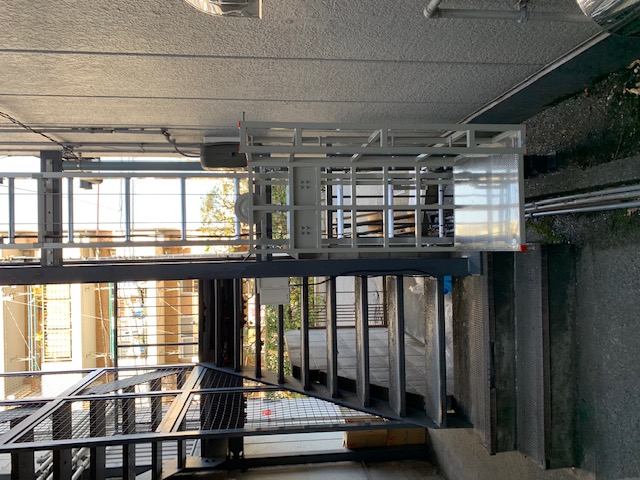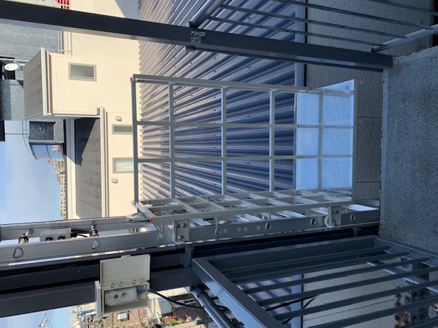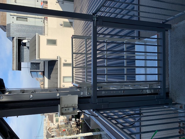 全長10.8m 特注3面台車 上限下限リミット装置 落下防止装置 最大積載荷重:上昇時120kg・下降時70kg