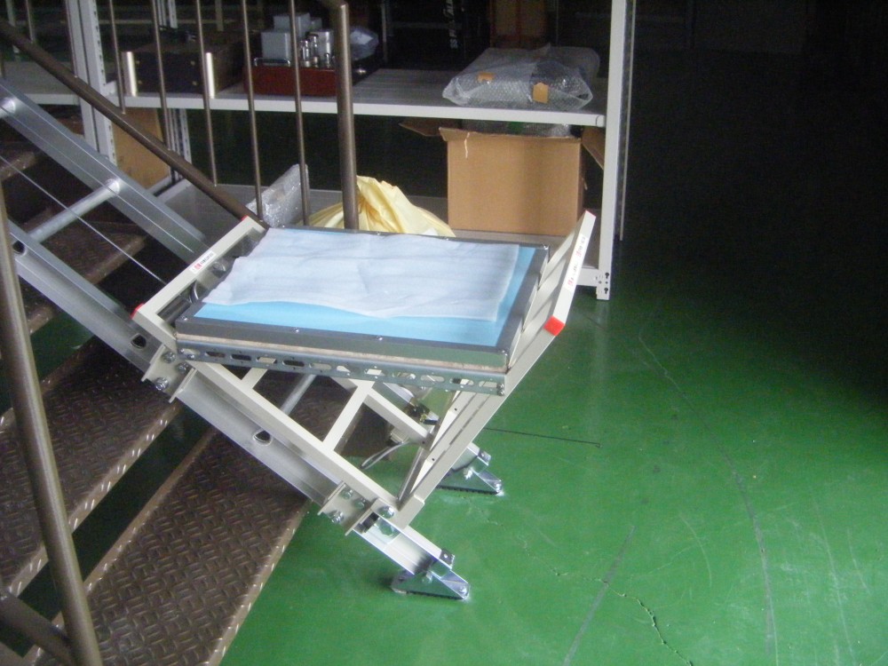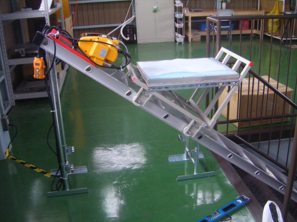レール全長6.6m 特注小台車使用(水平面板張り) 上限・下限リミット装置付き 最大積載荷重:上昇時120kg/下降時70kg推奨