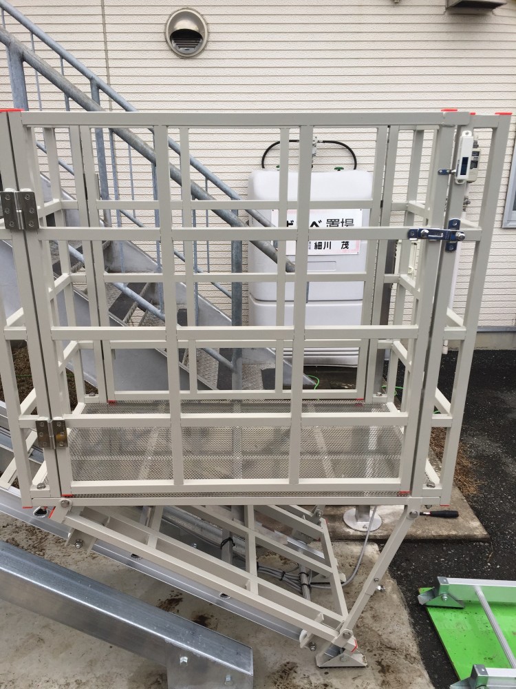 階段横に鉄骨を設置し、そこにリフトを設置。
