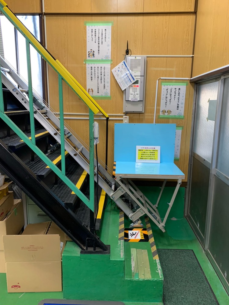 1階から2階への段ボールの荷降ろし・荷揚げ。