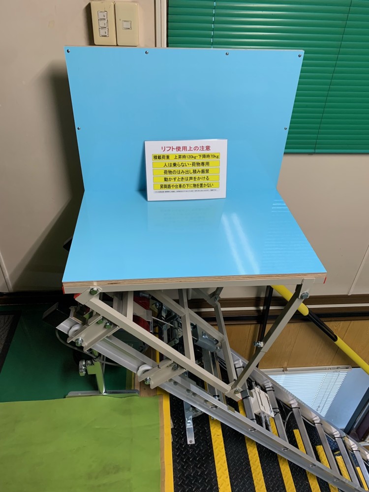 2階台車停止時。荷物の出し入れはこの方向から出来ます。