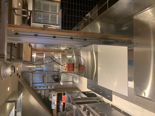 建物壁面では無く、店内の真ん中辺りに上から下へ板を流しております。