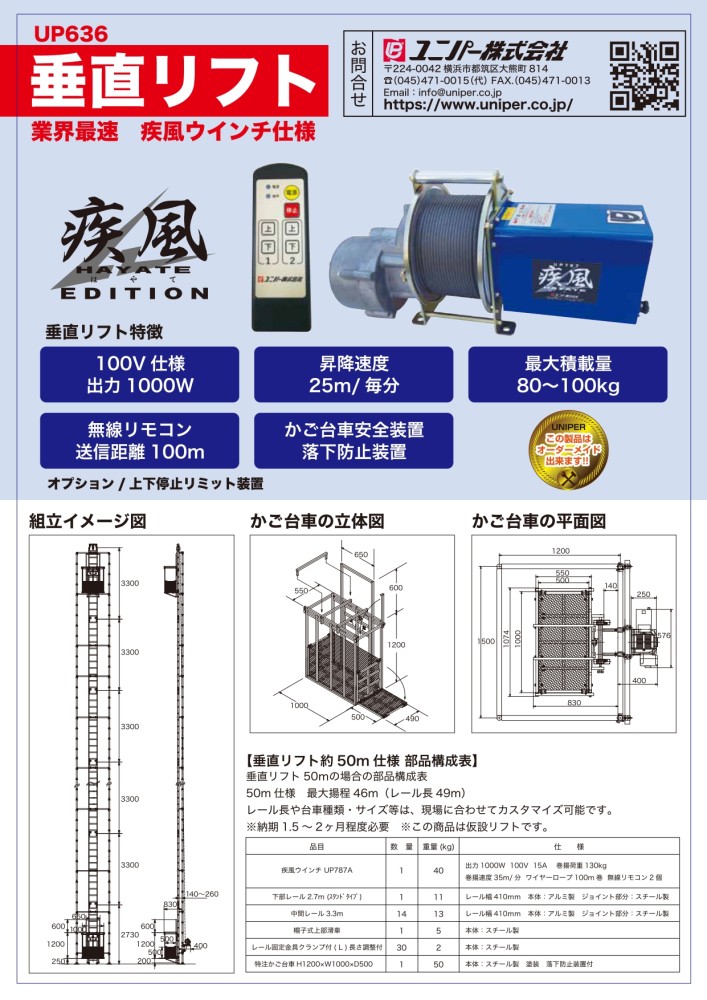 疾風(はやて)ウインチ[UP787A]使用。