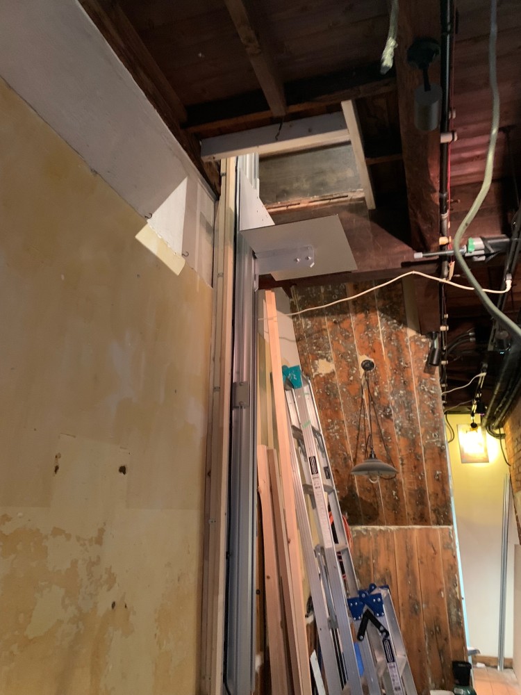 アゲチョイ横から、台車は開口部近辺の写真。台車が移動した際はレールのみが残る形です。内装工事時も邪魔なら動かしながらして下さい。とお願いしました。