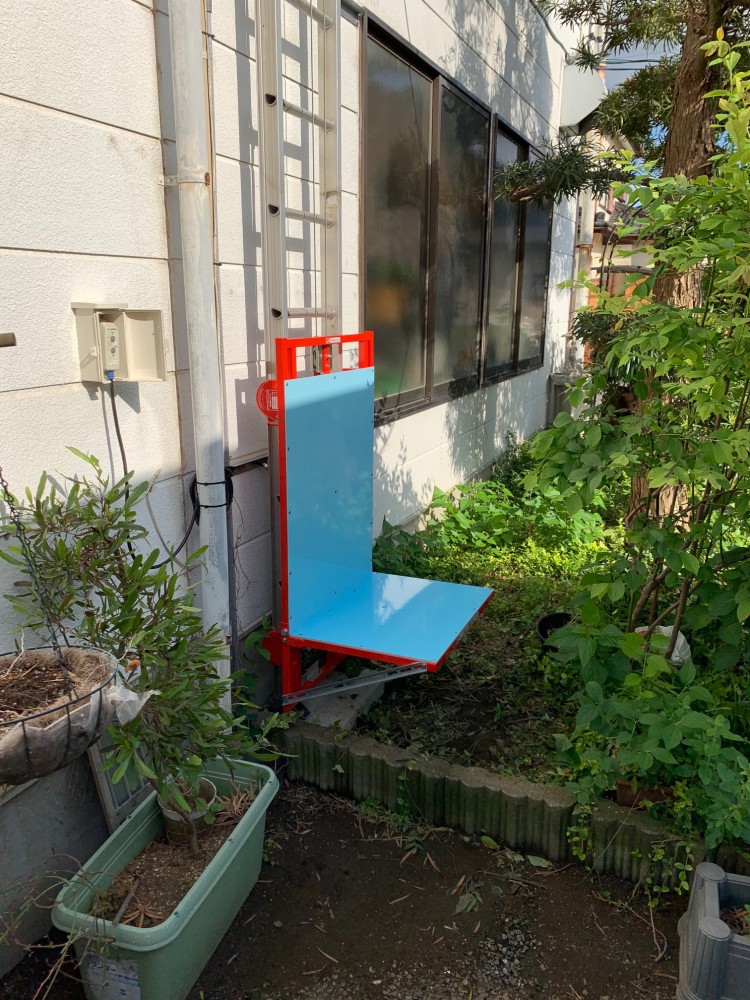 全長6.6m 積載荷重50kg 外設置、建物外壁に取り付け。 下限リミット・操作リモコンは2つ。 買い物の荷物を1階から2階玄関まで上げる為に設置。 荷物を持っての階段の昇り降りが無くなります。