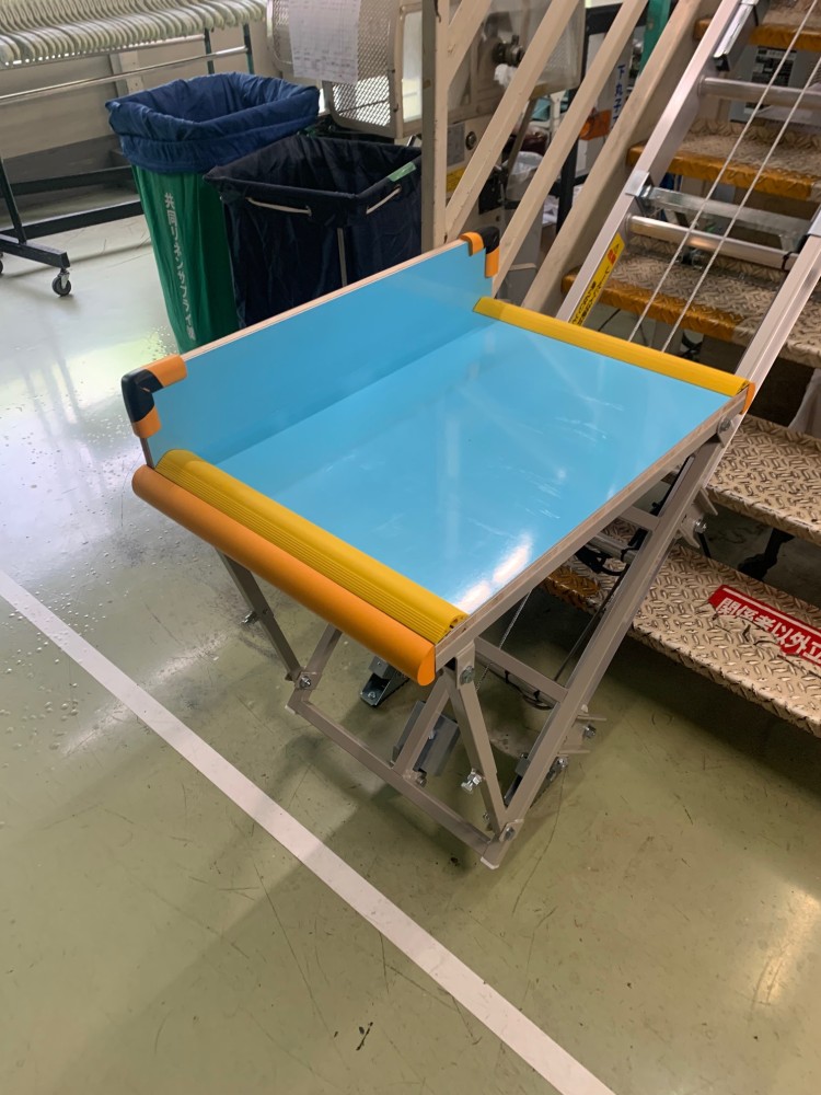 台車にはクッションカバーを付け、1階歩行帯での飛び出し事故・ぶつかり事故を防いでおります。この辺りはお客様のご要望により出来る限りはご対応しております。(設置後・使用後、水平面板張りサイズ変更やクッションカバーの変更等、改良したい場合でもご相談可能です。)
