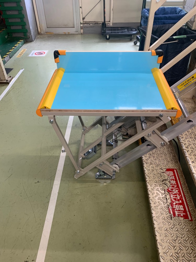 1階台車停止位置 水平面の両サイドにはカマボコ型のモール。積荷のはみ出し防止の為ですが、角ばったモールですと積み降ろし際に引っ掛かりがありますので、あえてカマボコ型を選定しております。(メリットデメリットもありますので全てご説明しております。)