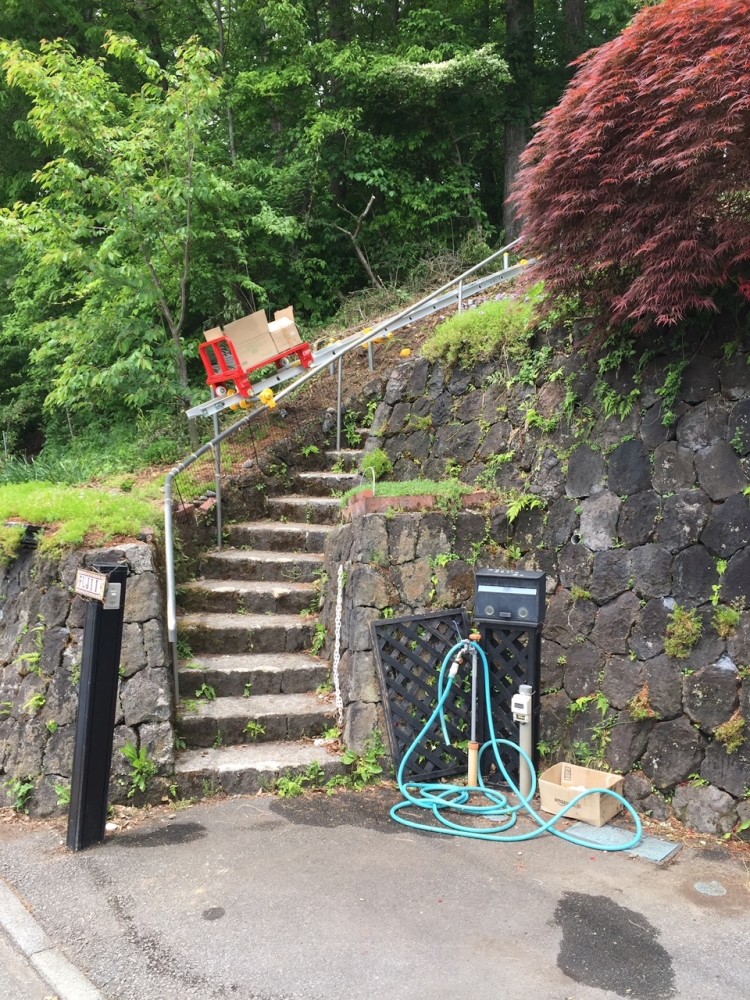 全景 駐車場から玄関までの階段横に設置。