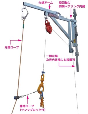 ・UP303シルバーユニアームを合わせて使用する事で介錯ロープをガイド代わりに荷揚げ可能